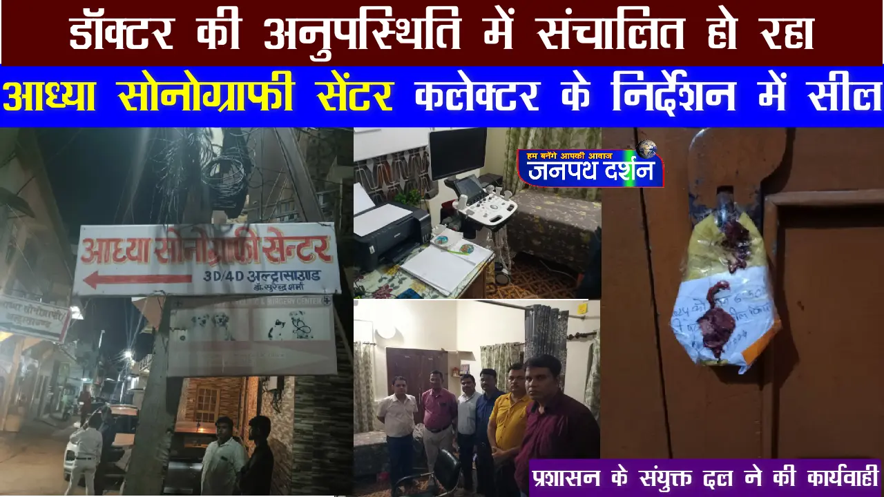 कलेक्टर संदीप जी.आर. के निर्देशन में छत्रसाल चौक के पास स्थित आध्या सोनोग्राफी सेंटर पर प्रशासनिक अधिकारियों की संयुक्त टीम द्वारा छापे मार कार्रवाई की गई। केंद्र पर डॉक्टर की अनुपस्थिति में सोनोग्राफी होना पाया गया। जिसके तहत सेंटर को तत्काल सील किया गया गया। प्रशासन की संयुक्त टीम में डिप्टी कलेक्टर राकेश शुक्ला, सीएमएचओ डॉ. आर.पी. गुप्ता सहित अन्य अधिकारी उपस्थित रहे। सोनोग्राफी सेंटर डॉ सुरेंद्र शुक्ला का बताया गया। जो अनुपस्थित थे। कलेक्टर द्वारा अवैध रूप से संचालित एवं नियमों का पालन नहीं करने वाले सोनोग्राफी सेंटरों पर सख्त कार्यवाही के निर्देश दिए गए हैं।