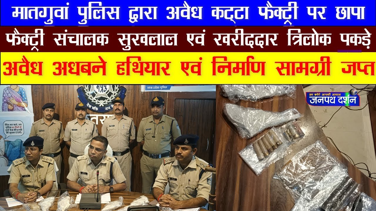 छतरपुर पुलिस द्वारा अवैध हथियारों के विरुद्ध निरंतर कार्यवाही की जा रही है अवैध हथियारों के श्रोत कट्टा निर्माण फैक्ट्री पर छापा मार कार्यवाही कर अवैध हथियार, अधवने हथियार, एवम निर्माण सामग्री जप्त कर संबंधित आरोपियों को गिरफ्तार कर जेल भेजा जा रहा है