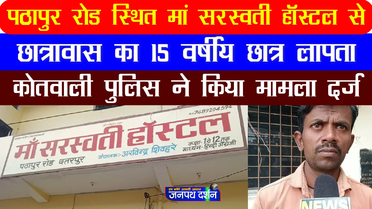 छतरपुर के पठापुर रोड स्थित मां सरस्वती हॉस्टल के एक दसवीं के छात्र के अचानक गायब हो जाने का सनसनी खेज मामला सामने आया