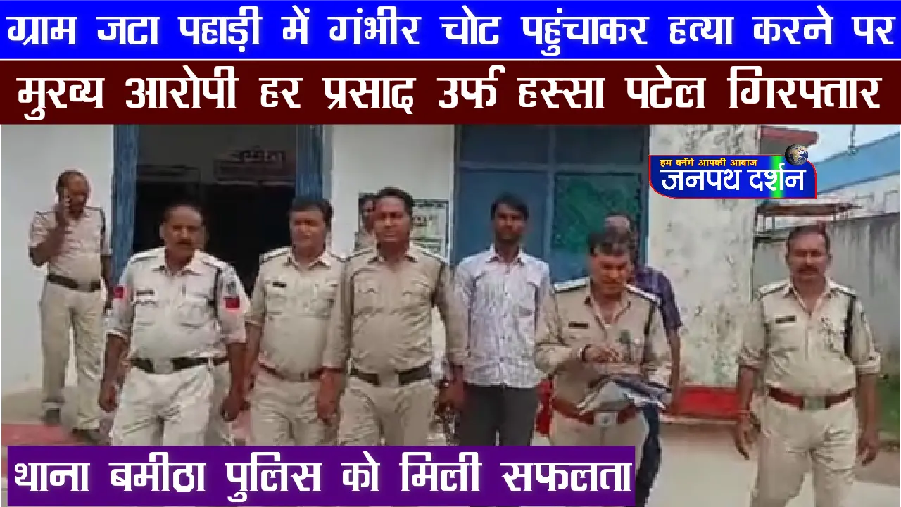 सीसी रोड में पटक कर गंभीर चोट पहुंचाकर मृत्यु कारित करने वाले मुख्य आरोपी हर प्रसाद उर्फ हस्सा पटेल निवासी ग्राम जटा पहाड़ी थाना बमीठा को गिरफ्तार कर अभिरक्षा में लिया गया। अभियुक्त को न्यायालय पेश कर जेल भेजा जा रहा है। अन्य आरोपी की तलाश व विवेचना कार्यवाही जारी है।